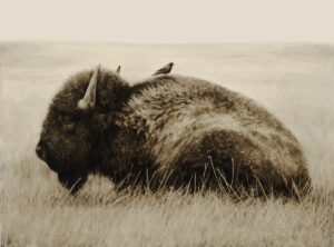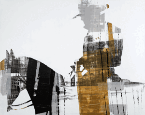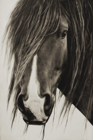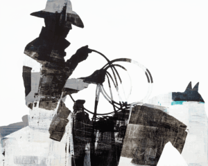 A drifter is “one who travels or moves about aimlessly,” an apt description for both the artist Kenneth Peloke and the wild characters he paints. Inclined to wander creatively since childhood, Peloke now finds himself drawn to animals who do the same, who embrace the freedom to roam: horses unencumbered by corrals; bison undaunted by property lines; wolves roving for prey; even cowboys on the range. All are wild souls disposed to cover wide terrain, a disposition Peloke shares. Having taught himself to paint and draw at age seven, he meticulously depicted the natural world around him and then layered his academic study of art and music into a deep appreciation for abstraction. While practical concerns led him to choose a career in graphic design, the sea of change that is fatherhood allowed him to rediscover the drifter-artist within.