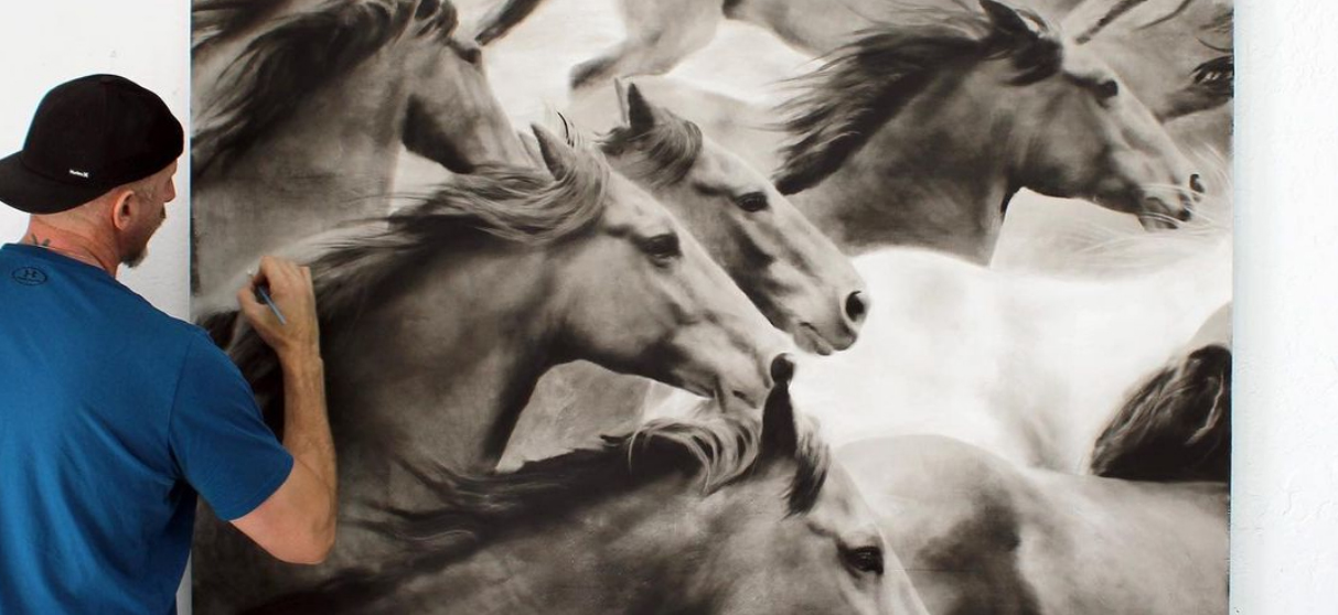 “Art saved me,” he says. “People ask me all the time, ‘How did you become a painter?’ To be honest, I don’t know. I didn’t have a plan or direction. I followed my instinct.” He identifies with the elemental priorities embodied by free-range animals—providing for their young and themselves, protecting their territory—“completely opposite from the world we live in today,” he says. “To be in a field, free and alone, I’ve always been drawn to that ideal.” Ideally, collectors connect with this notion and see his canvases as a conduit for reflection and an indication of personal achievement. “I feel blessed to paint,” Peloke says. “I hope my paintings inspire people to take a deep breath and give people a sense of satisfaction for all they’ve accomplished. I hope they provide a bit of an escape, even if for only a moment.”